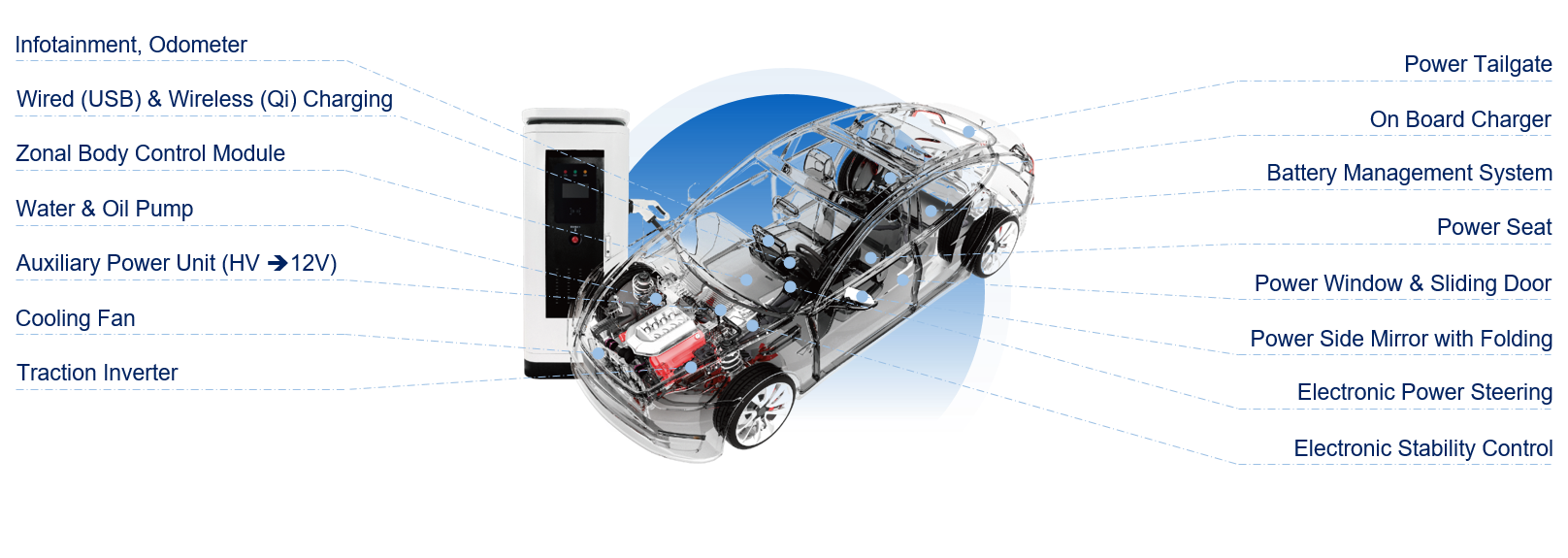 CQ9传奇电子微电 车规级产品 (MOSFET, TVS) 广泛应用于车灯照明及新能源汽车电源应用。 车规级 MOSFET 通过先进的工艺制程,提供优异的电气特性如 RDS(ON) 和 Qg,非常适合工作频率较高的开关电源应用。目前产品涵盖低压 40 ~ 60V、中压 100 ~ 150V、以及超结高压 650V 以上各类应用。 车规级 TVS 采用独特的 CLIP 结构,相对于传统的 A+B 结构,可以避免虚焊,减少芯片应力,提供高可靠性。在性能上实现卓越的钳位能力、漏电流小、快速的响应速度,同时满足 AEC-Q101 等级测试规范。